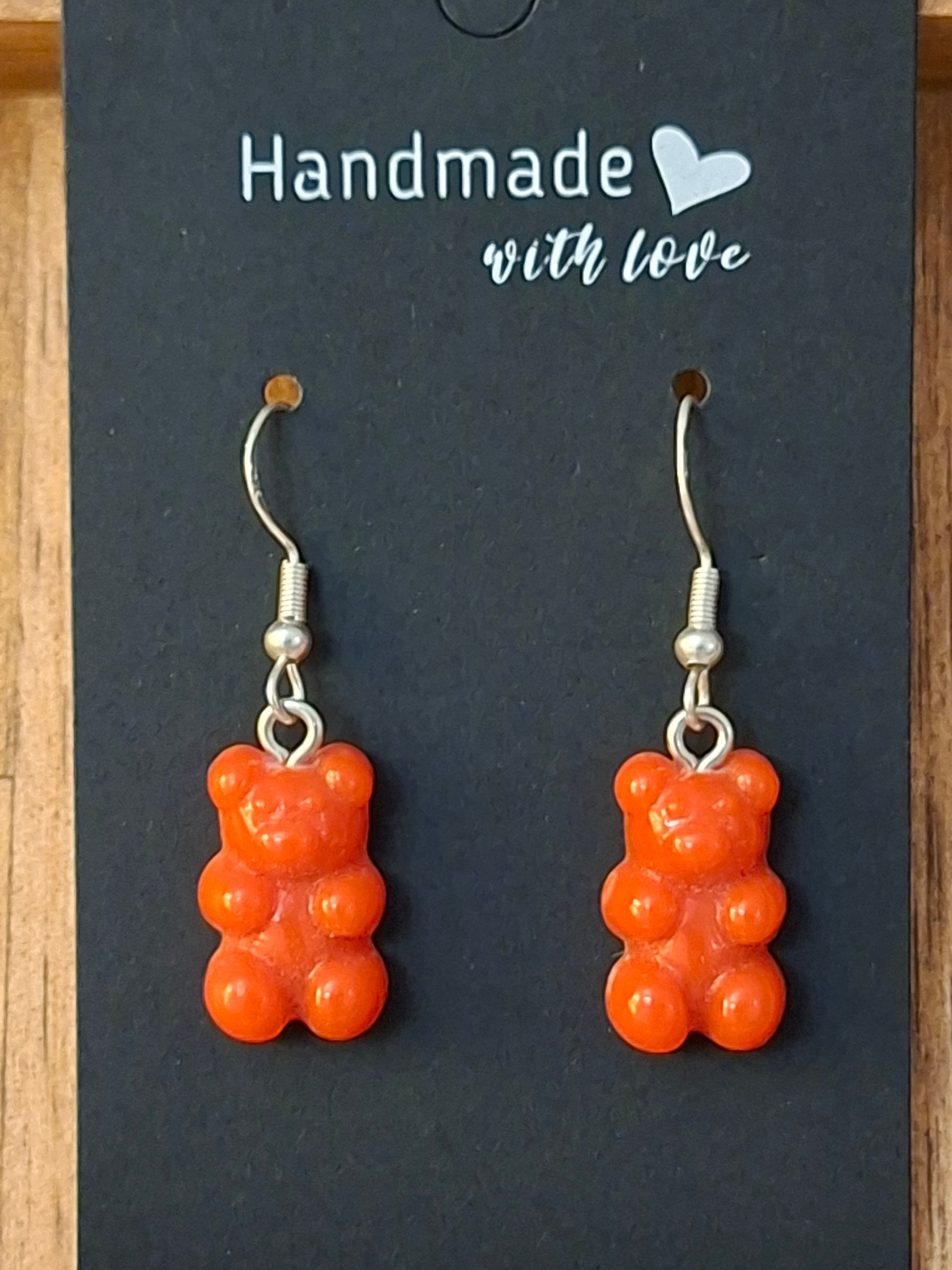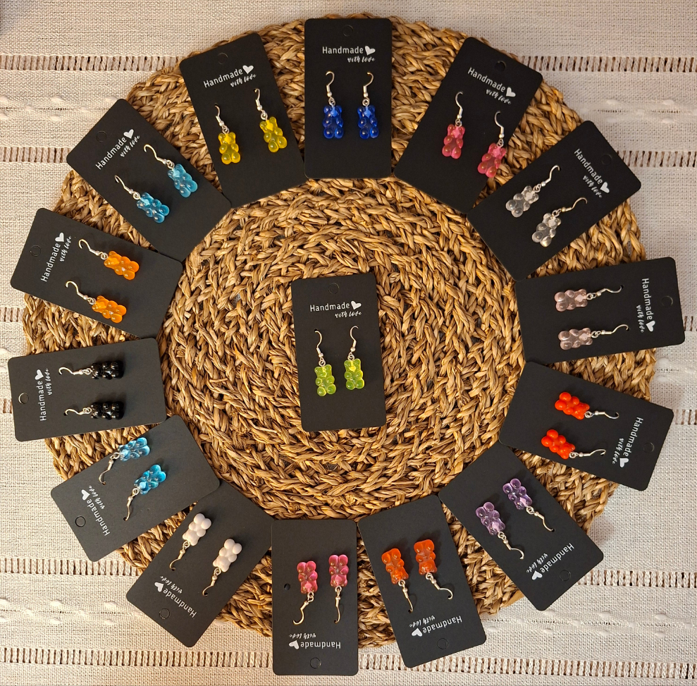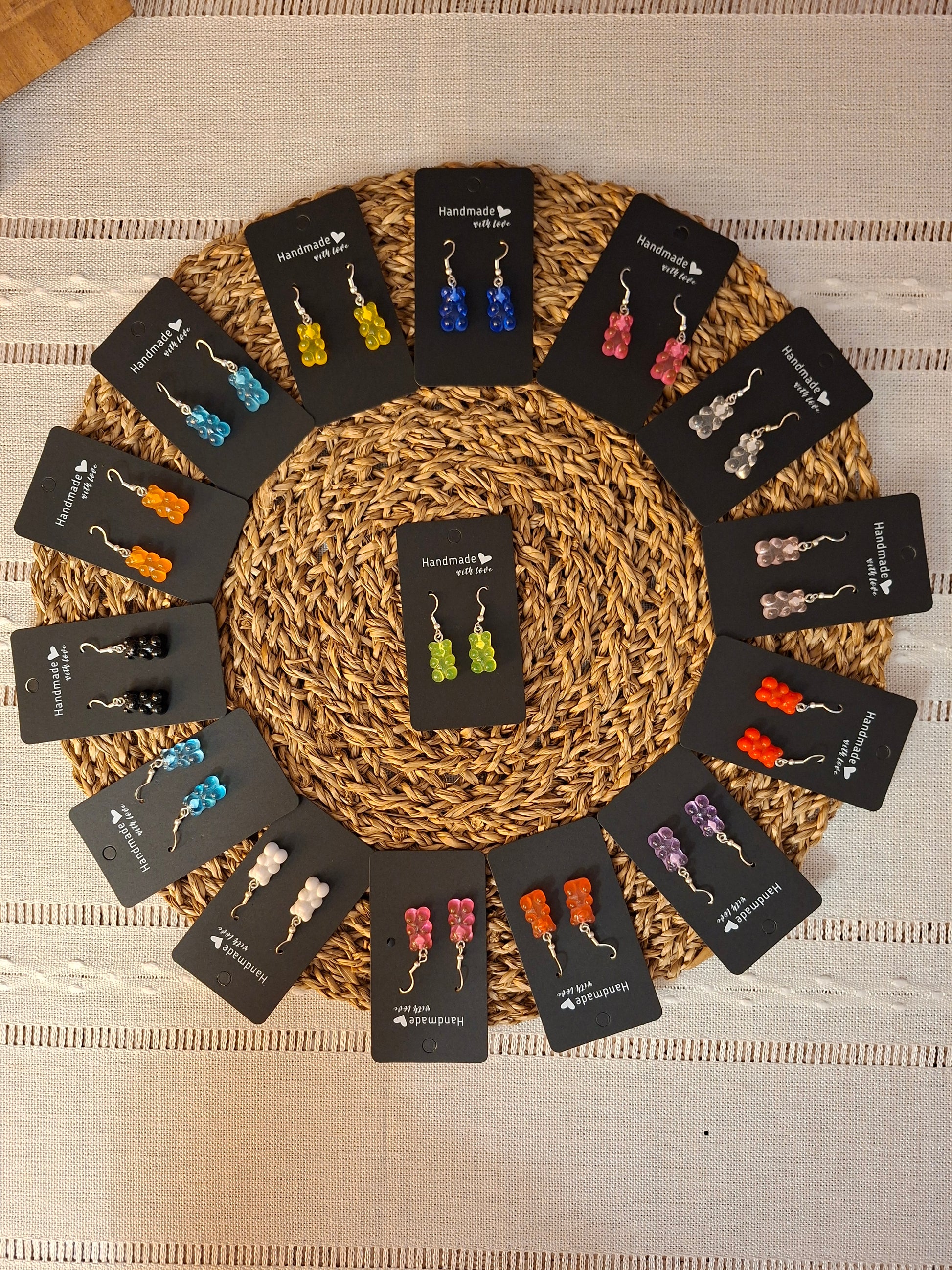 Expertly crafted with shiny resin in a variety of vibrant colors, these Gummy Bear dangle earrings are a playful addition to any outfit. The silver hooks provide a secure and comfortable fit, making them perfect for everyday wear. Add a touch of fun and color to your ensemble with these adorable earrings.