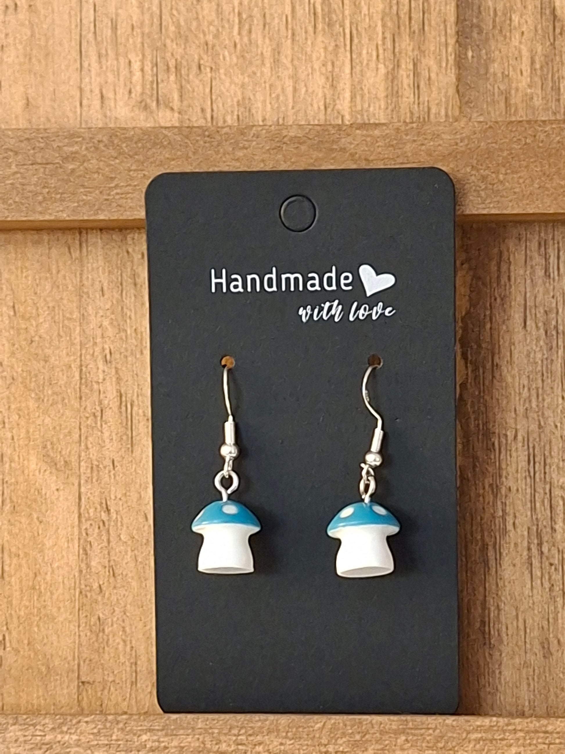Expertly crafted with polymer clay and resin, these large mushroom earrings are a must-have for any jewelry collection. The silver dangle hooks add a touch of elegance while the unique design will make a statement. Ideal for those looking for stylish and durable accessories.