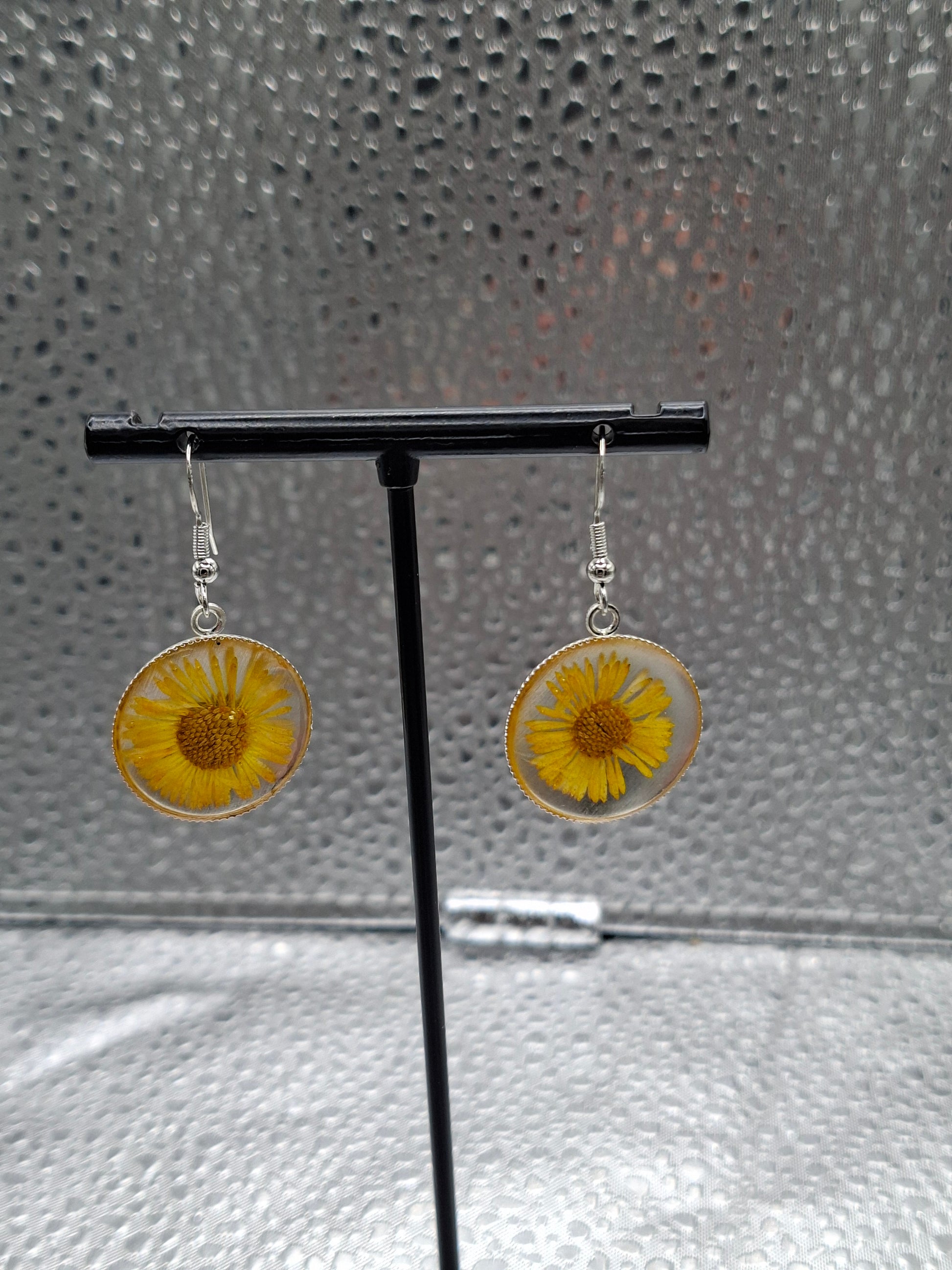 Experience the beauty of nature with our Real Flower Earrings in bright yellow. Each earring features a real flower encased in resin, making them truly unique and eye-catching. Show off your love for nature and stand out from the crowd with these stunning earrings.