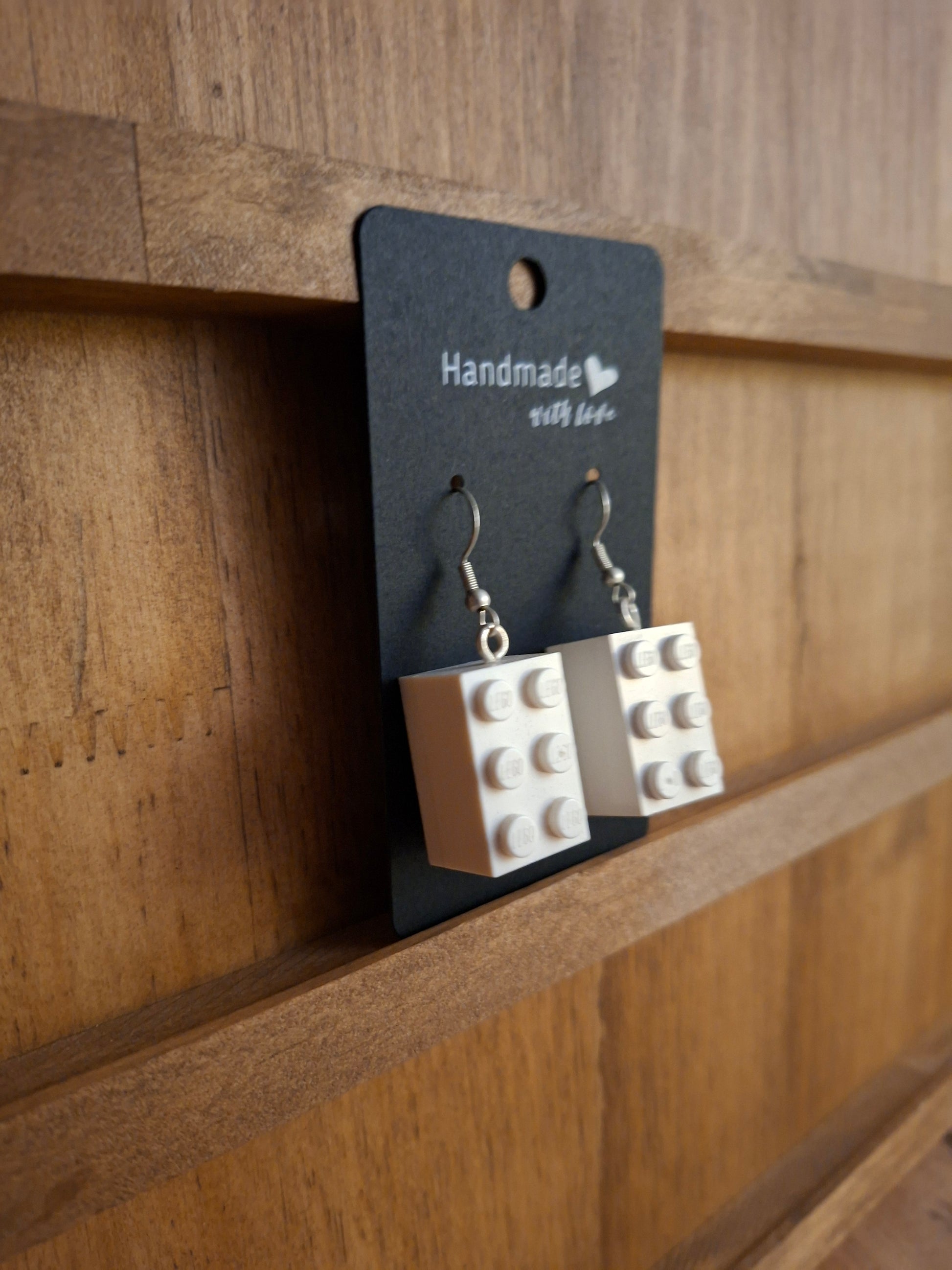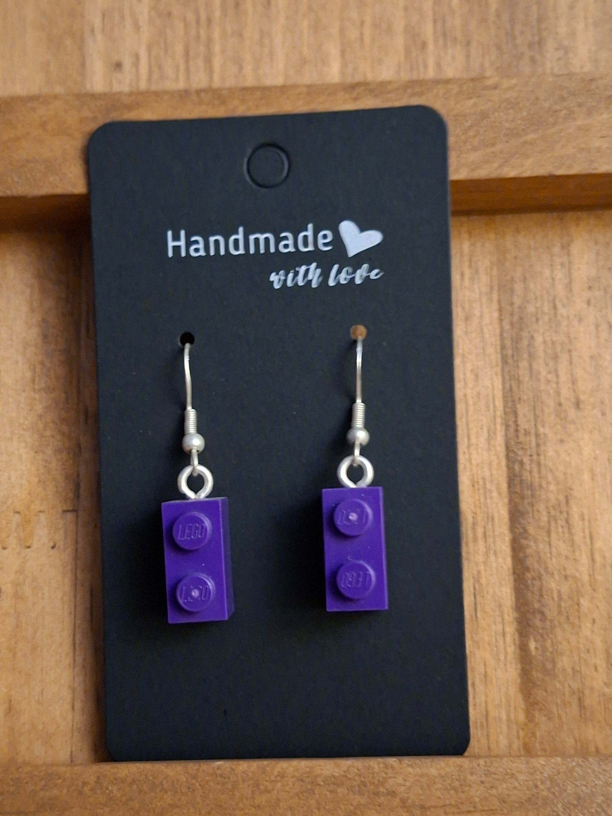 Transform your love for building into a fashion statement with these Lego earrings. Each pair are made with upcycled Lego pieces that were cleaned and polished to give them a new life into a stunning piece of creative jewellery they are then attached to silver hooks for a unique and stylish look. Show off your creativity and love for sustainability with these one-of-a-kind earrings..fun ..happiness..playful and one of a kind