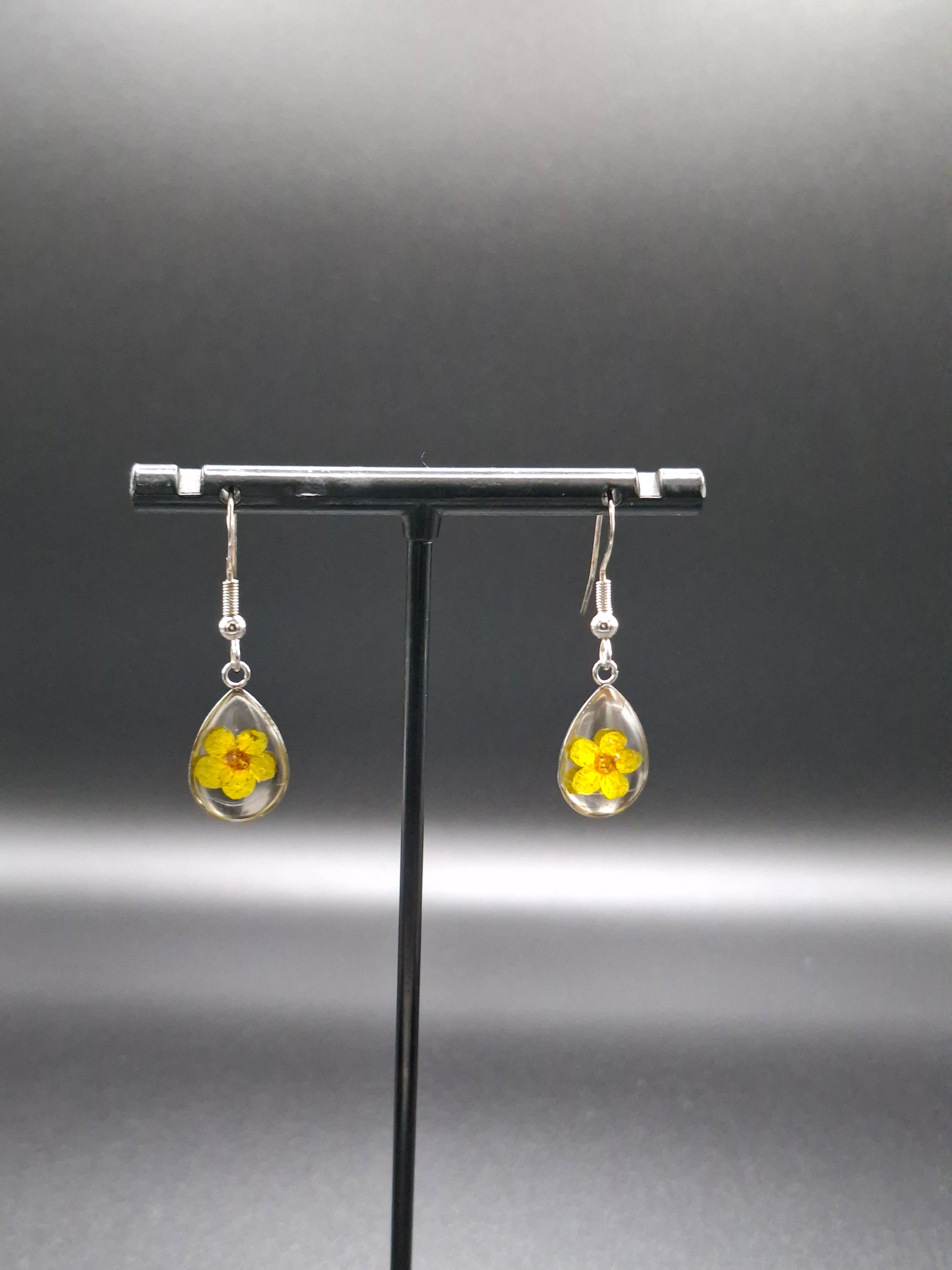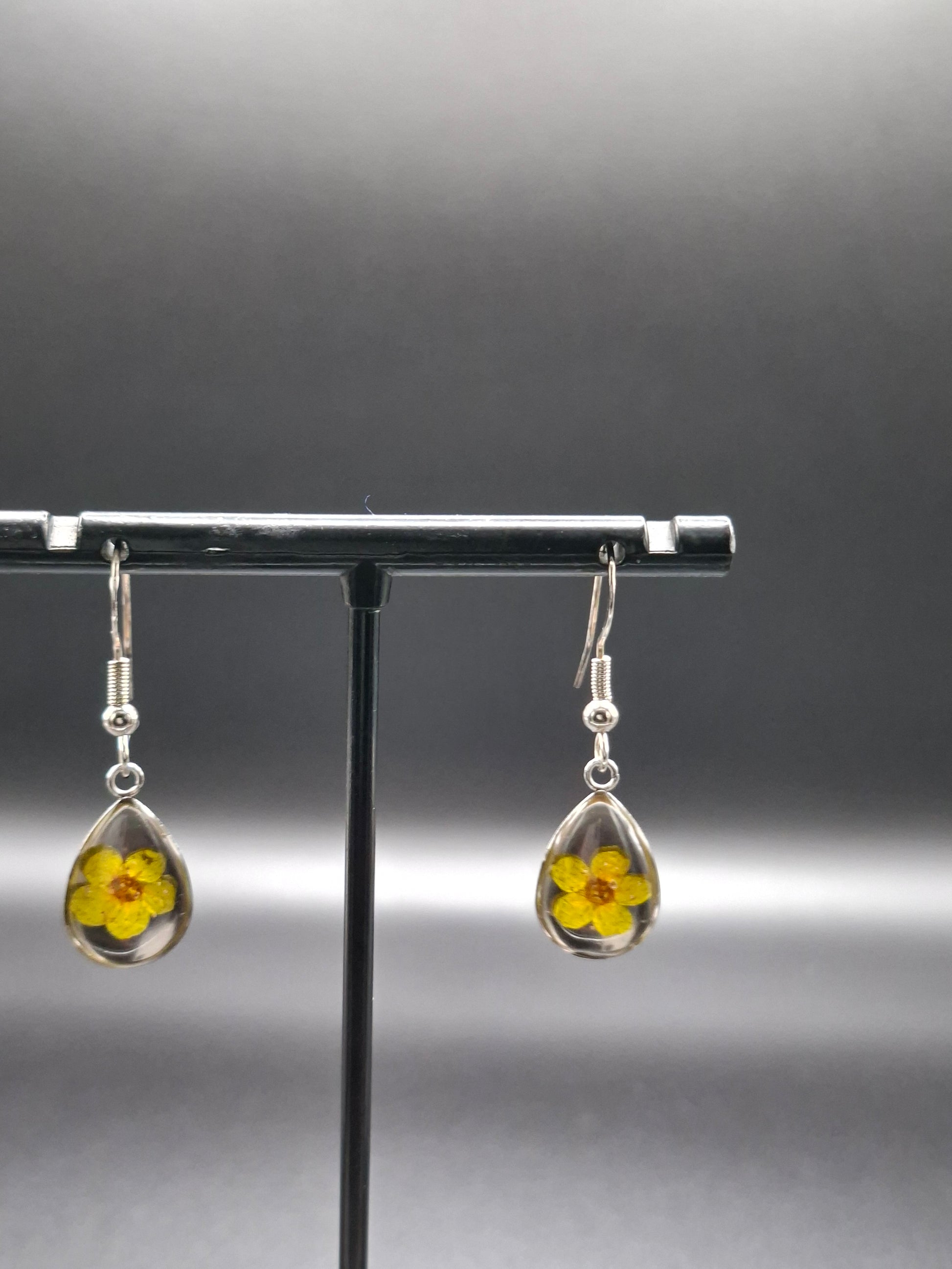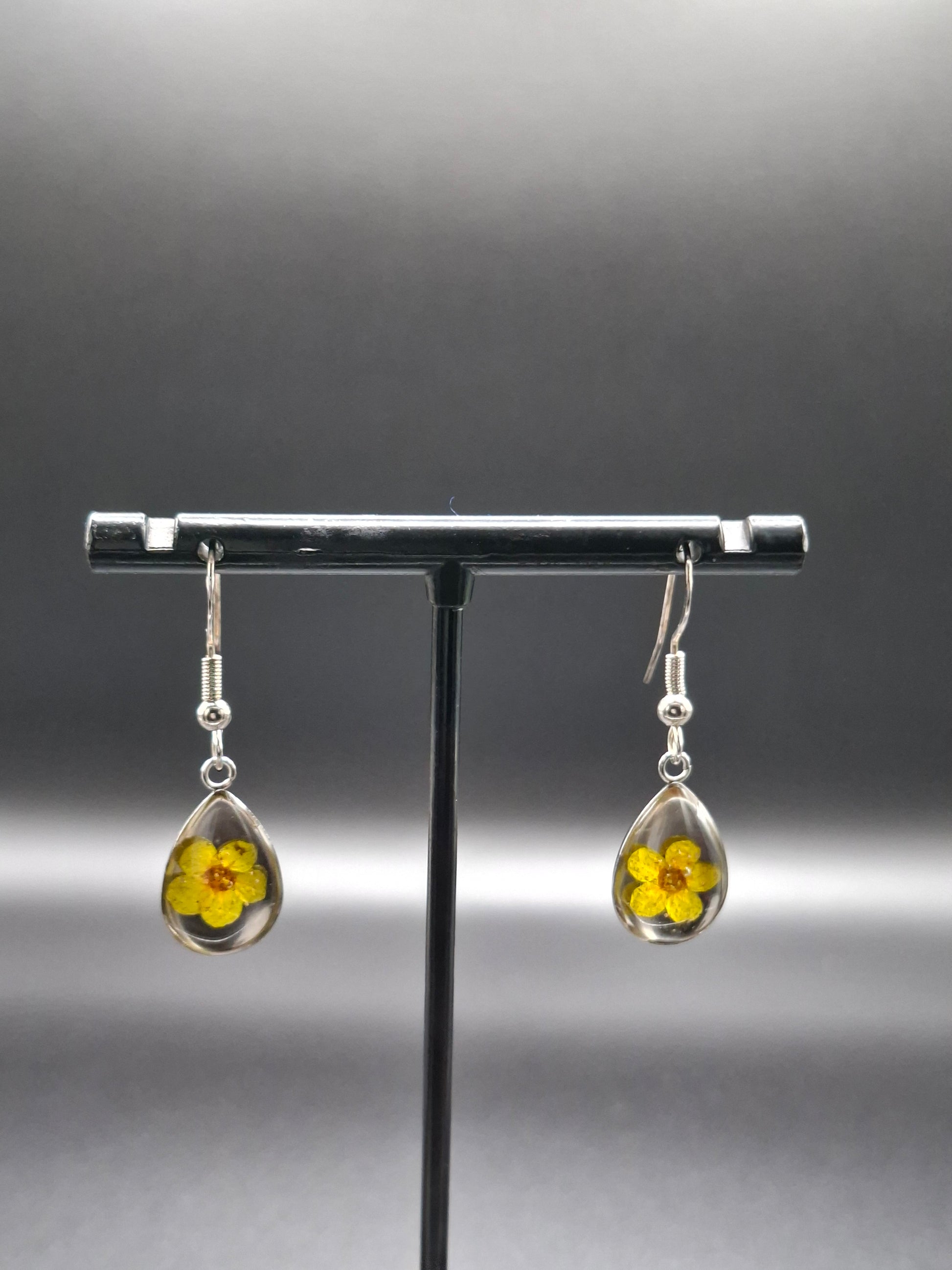 Experience the beauty of nature with our Real Flower Earrings. Made with real flowers encased in resin and set in a teardrop shape dome for a stunning look. The silver hooks add a touch of elegance to these unique earrings. Bring a touch of nature to your style today.